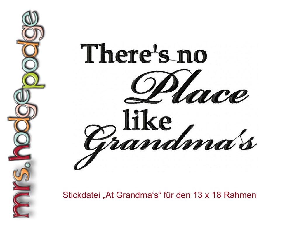 Stickdatei "There's no Place like Grandma's" für den 13 x 18 Rahmen.