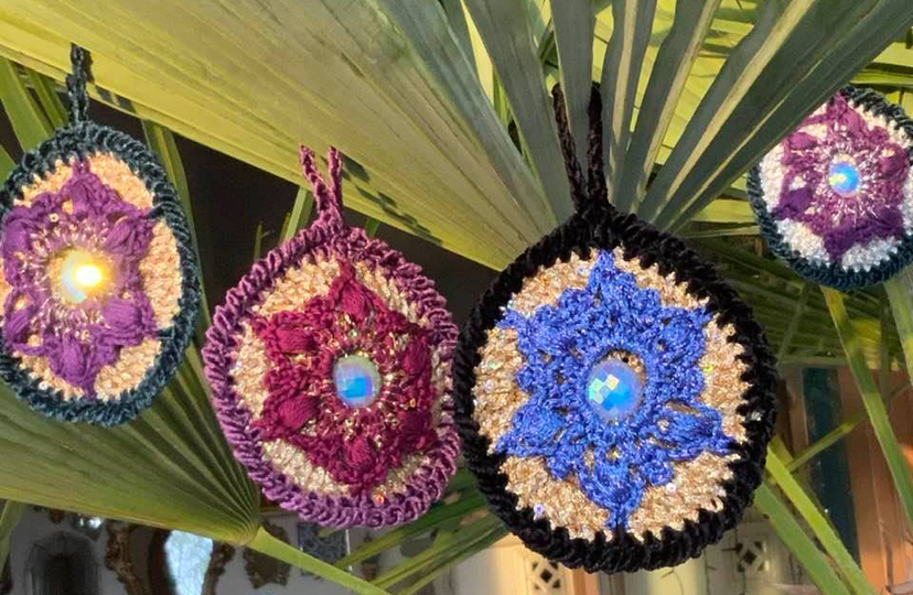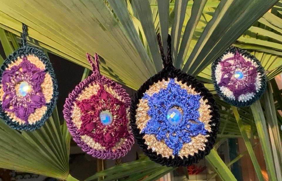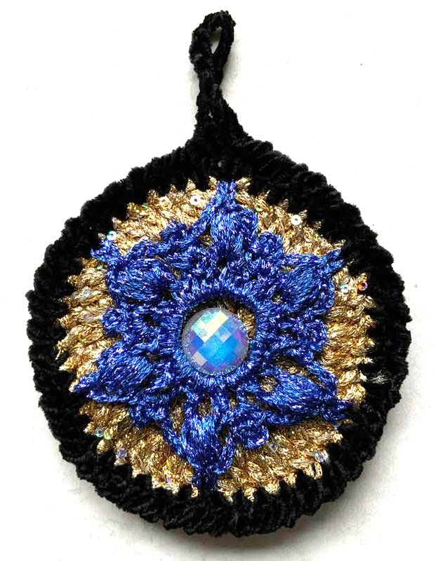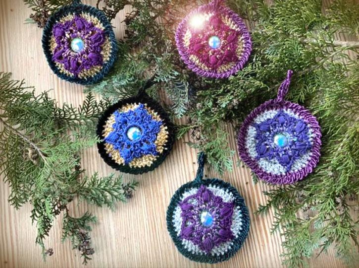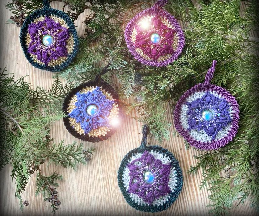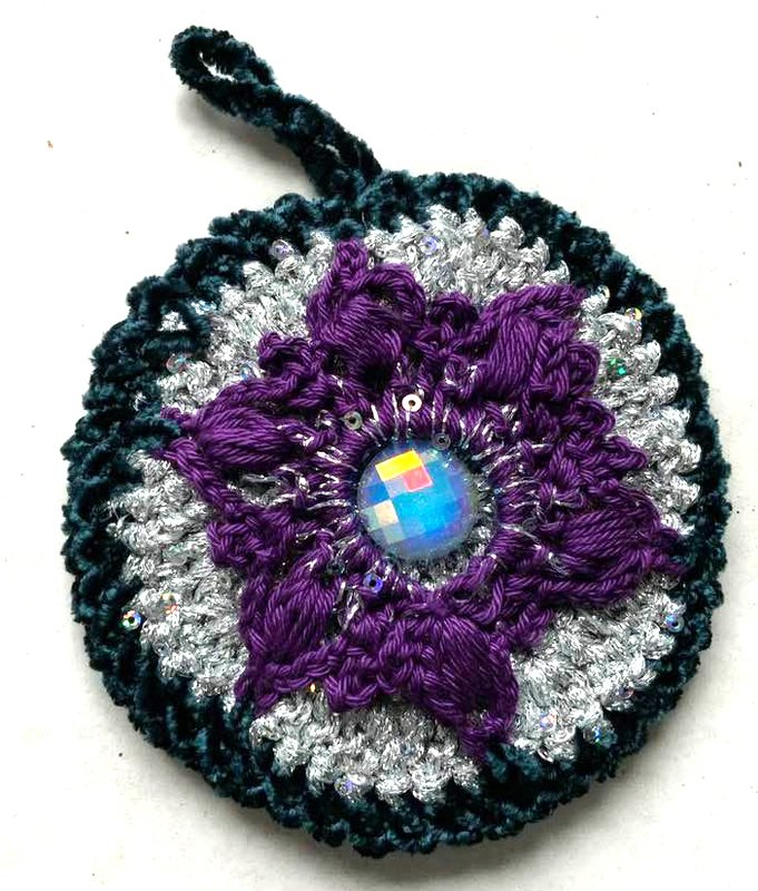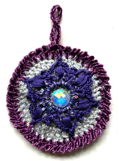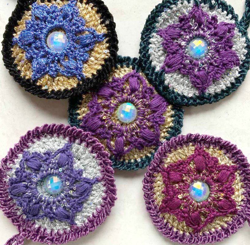 Christbaumschmuck "NobleDisc" das sind herrlich glitzernde Scheiben die vorne und hinten gleich aussehen...hier kommt viel Lurexwolle und Pailetten- Beilaufgarn zum Einsatz.