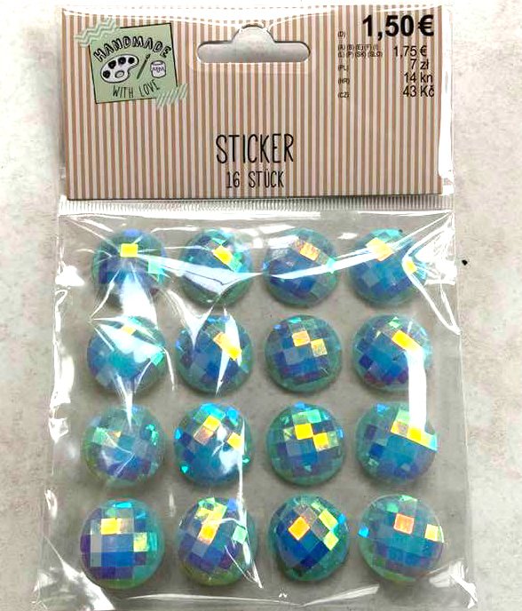Dann noch einen glitzernden Mittlepunkt ..ich benutze dies selbtklebende Sticker von TEDI.....natürlich sind hier auch schöne Knöpfe oder Perlen passend.