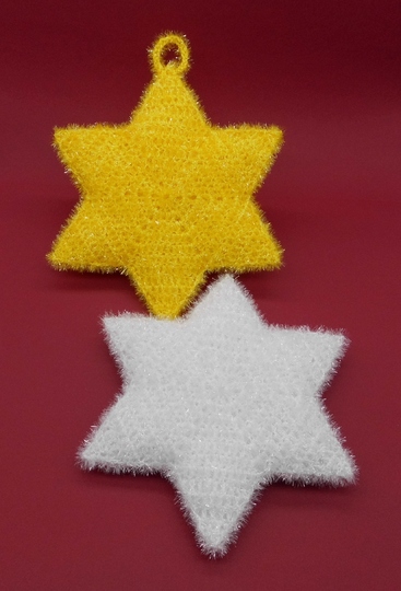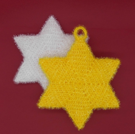 Dieser Stern wird, einfach und schnell, aus flauschigem Schwammgarn gehäkelt und kann als Schwamm zum Baden und Duschen genutzt werden. So verbindet sich das Schöne mit dem Nützlichen.