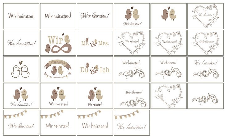 • 28 Motiv- und Textvorlagen für die Vorderseite der Einladung (A4-Format)