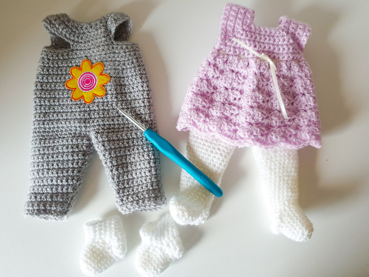 Die Puppen sind etwa 28 cm groß. Die enthaltene Kleidung ist für Puppen von 25-30 cm geeignet.