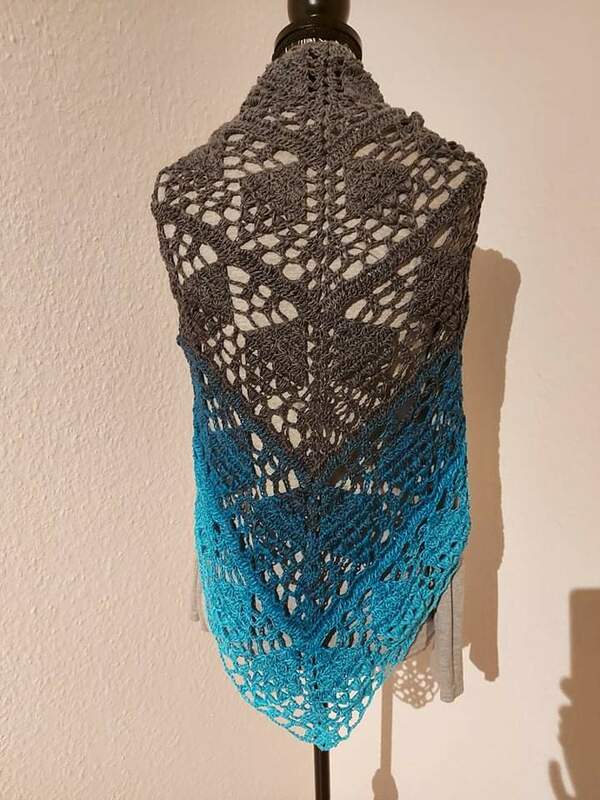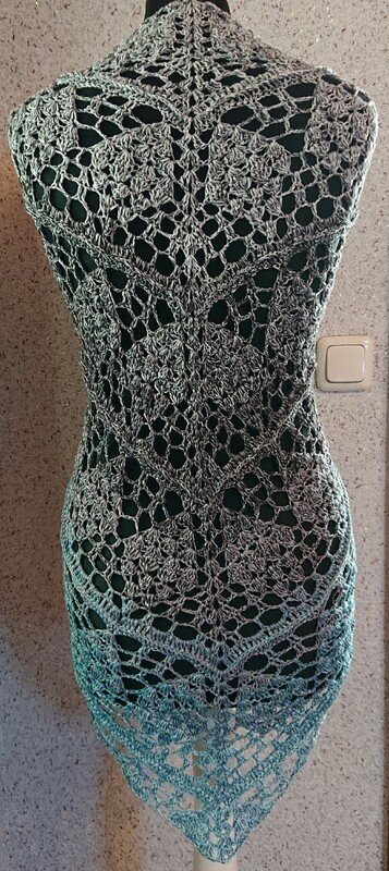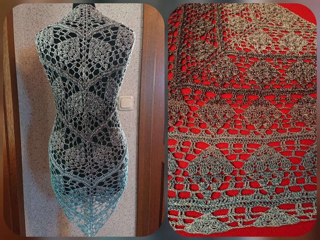 Die Anleitung zum Tuch besteht aus schriftlich ausformulierten Reihen und beinhaltet eine Häkelschrift.