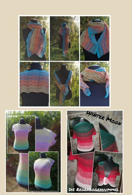 In diesem PAket bekommt ihr 3 Anleitungen. Den Schal Winter Waves, das Tuch/die Weste Winter Moon, den Pullover Autumn Magic.