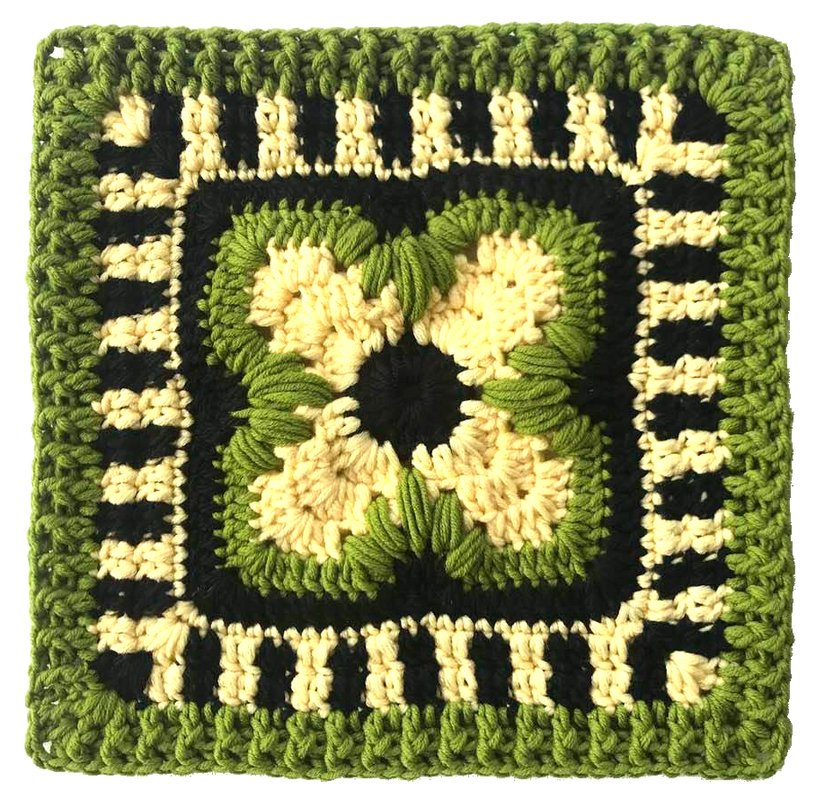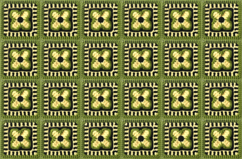 ein fertiges Grannymuster "Crossing" besteht aus 11 Runden....wiegt 64 gr und ist 26 cm breit und hoch