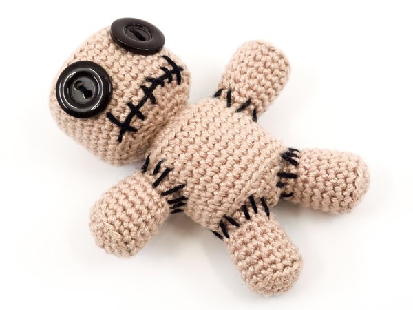 Dieses kleine Voodoo Puppen Nadelkissen lässt sich schnell häkeln und eignet sich perfekt als Deko Figürchen, Geschenk oder Schlüsselanhänger.