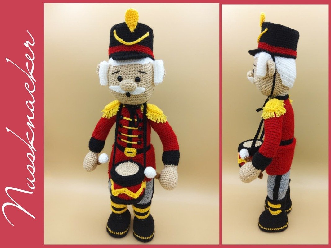 Ich habe den Nussknacker mit einer Häkelnadel von 2,0 und dazu passender Wolle gearbeitet und er hat bei mir eine Größe von ca. 44 cm.
