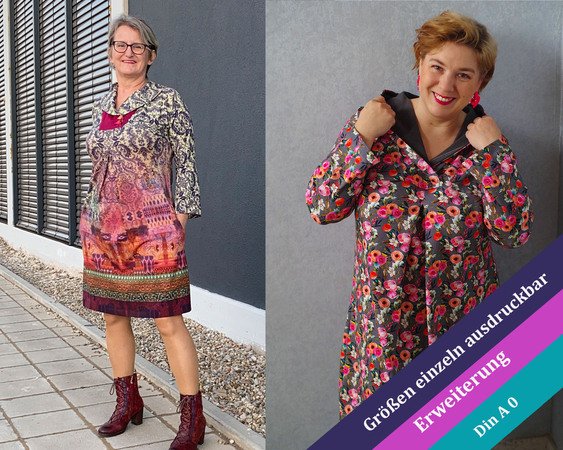 Wie beim Petunia Orginalschnittmuster gibt es auch hier die 3 Längen, Shirt, Tunika oder Kleid und alles wie gehabt mit den verschiedenen Armlängen. Auch hier sind die Größen von 34 bis 54 erhältlich.