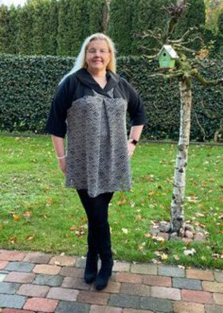 Geeignet sind elastische Stoffe mit Elasthan-Anteil oder Jersey. Beim Probenähen sind auch nicht dehnbare Stoffe ohne Elasthan genäht worden, wobei sich ergab, dass dann eine Größe größer gewählt werden muss! Es sollte hierfür auf jeden Fall ein weich fließender Stoff zur ausgesucht werden.