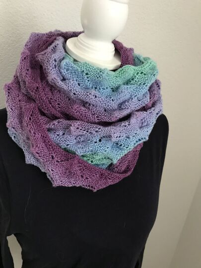 Möbius habe ich mit Farbverlaufsgarn Bobbel 800 lm 3fädig verarbeitet.