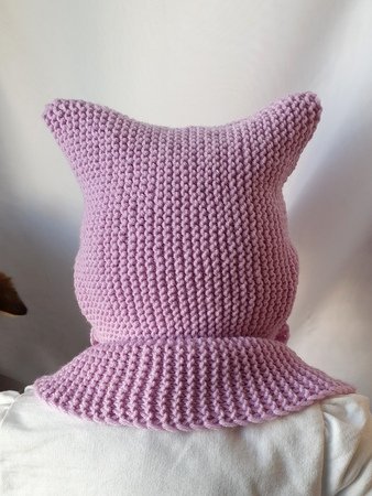 Die Schalmütze wird in einem Stück gestrickt und an 2 Seiten zusammengenäht. Die Schalmütze hält schön warm und auch die Ohren sind geschützt.