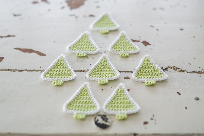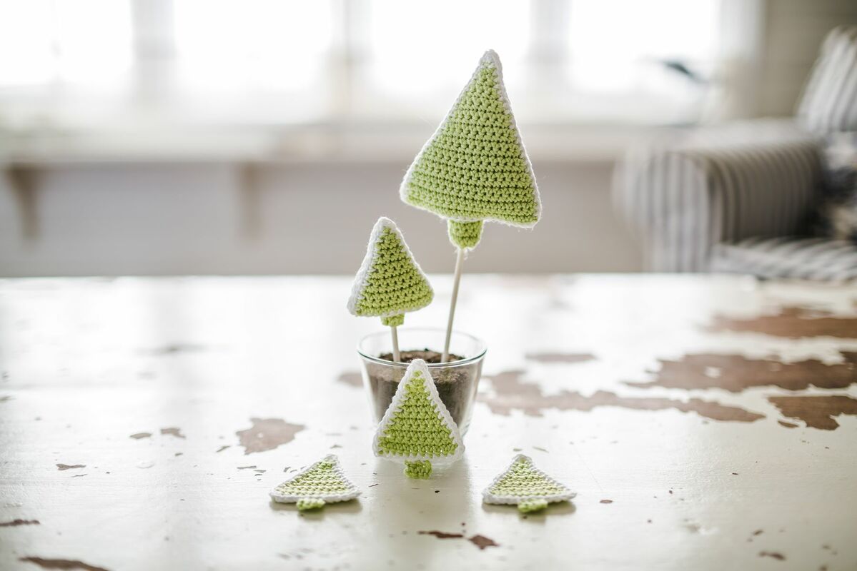 Häkelanleitung für einen wunderschönen Tannenbaum in zwei Größen, gehäkelt aus festen Maschen und Stäbchen.
