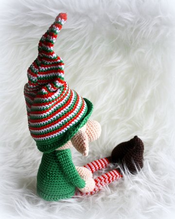 Wenn du mit Baumwolle (125m LL auf 50g) häkelst, wird dein kleiner Elf von Mützen- bis Zehenspitze ca. 34cm lang - ohne Mütze sind es ca. 24cm.
