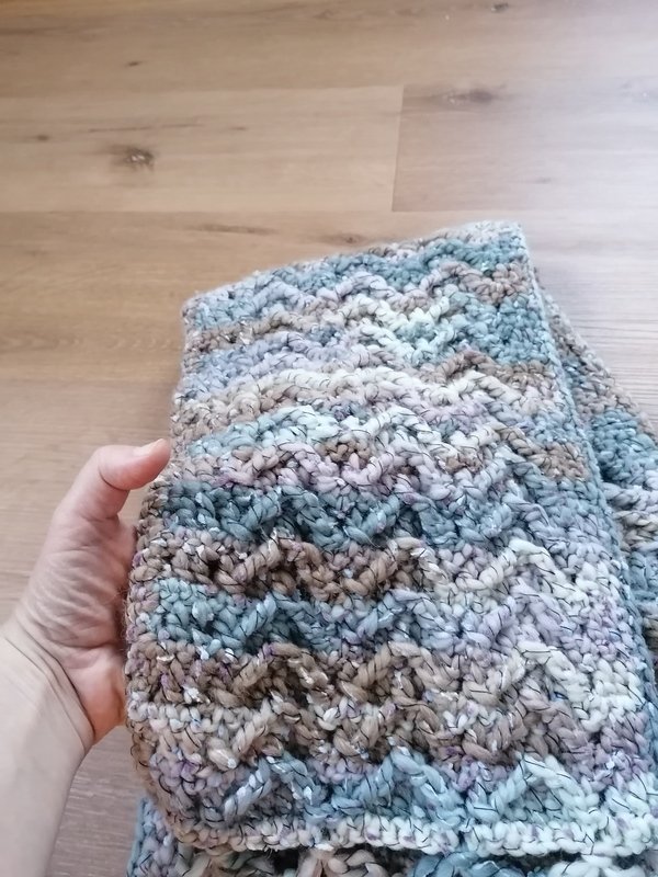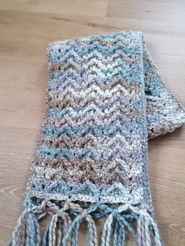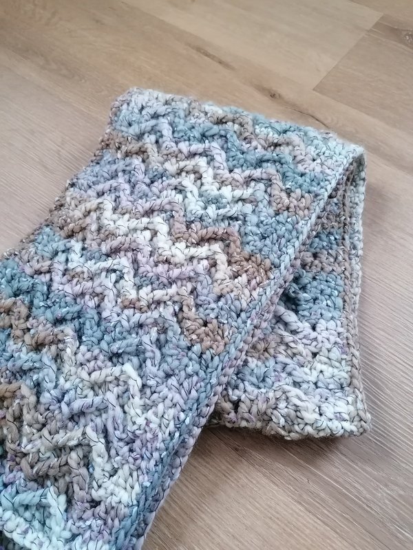 Der Schal ist in einem trendigen Zackenmuster gearbeitet
