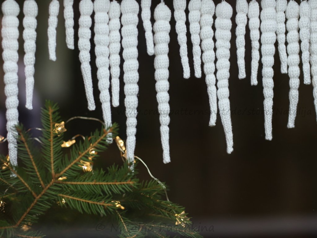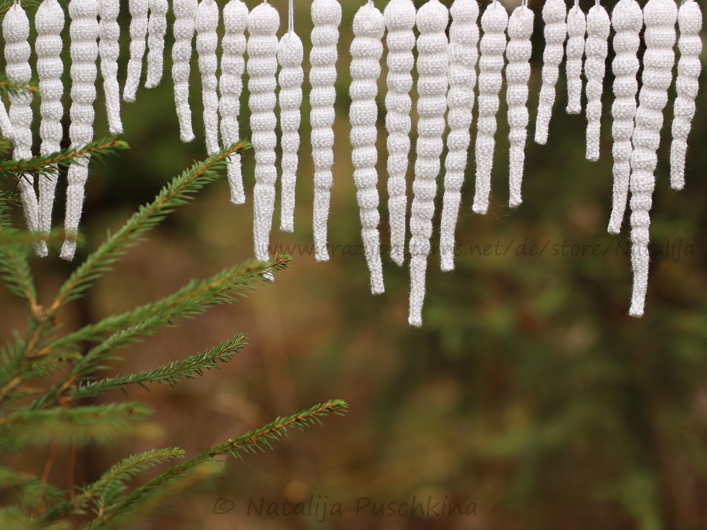 Verkauf der von Dir hergestellten Eiszapfen ist möglich: Du darfst die Artikel, die Du mithilfe meiner Anleitung zum Häkeln von Eiszapfen gefertigt hast, in beliebiger Stückzahl gewerblich verkaufen. Bitte den Hinweis: „Angefertigt nach dem E-Book von Natalija Puschkina https://www.crazypatterns.net/de/store/Natalija“ dazusetzen.