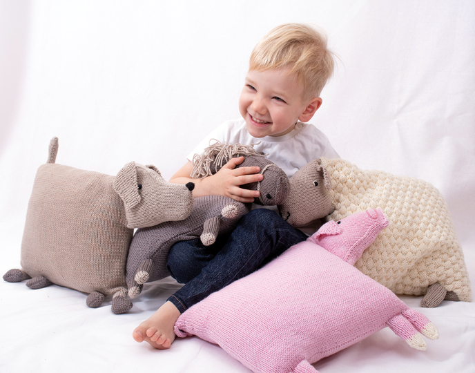Sie sind allesamt Kissen, die aus unserer herrlich weichen Bellalotta Merinowolle Melina gestrickt werden und sich garantiert in jedem neuen Zuhause als tolle Begleiter für Groß und Klein erweisen werden.