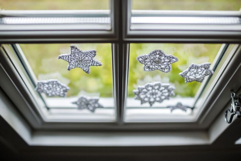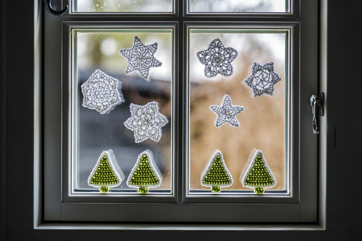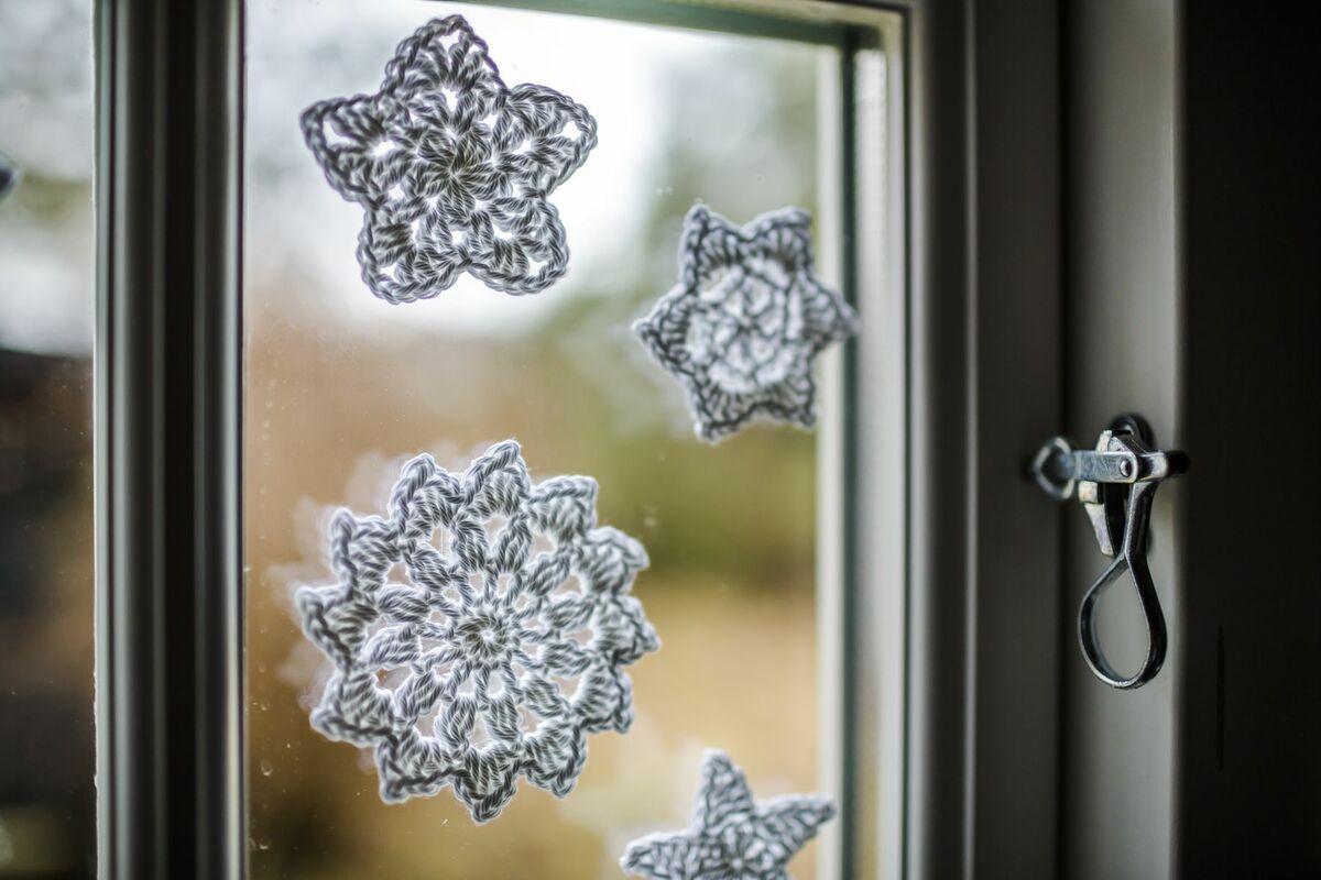 Häkelanleitung für 7 verschiedene wunderschöne Sterne, bzw. Schneekristalle gehäkelt aus festen Maschen, Stäbchen und Doppelstäbchen (Anleitung Tannenbäumchen separat erhältlich).
