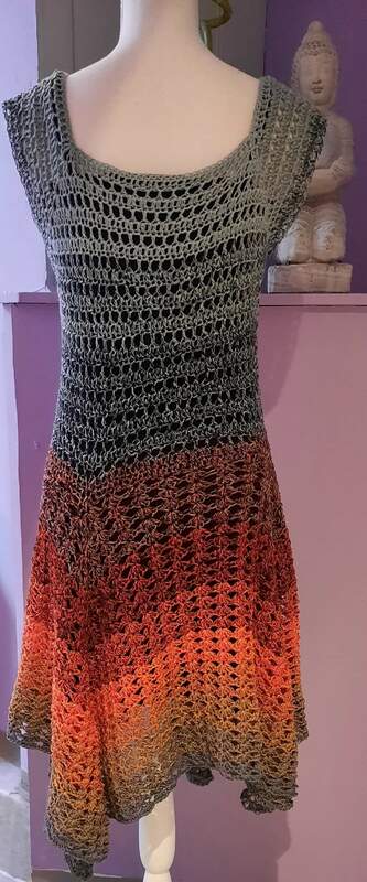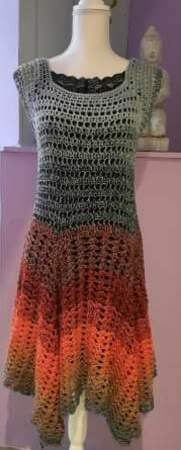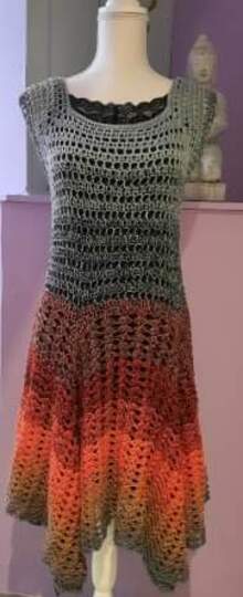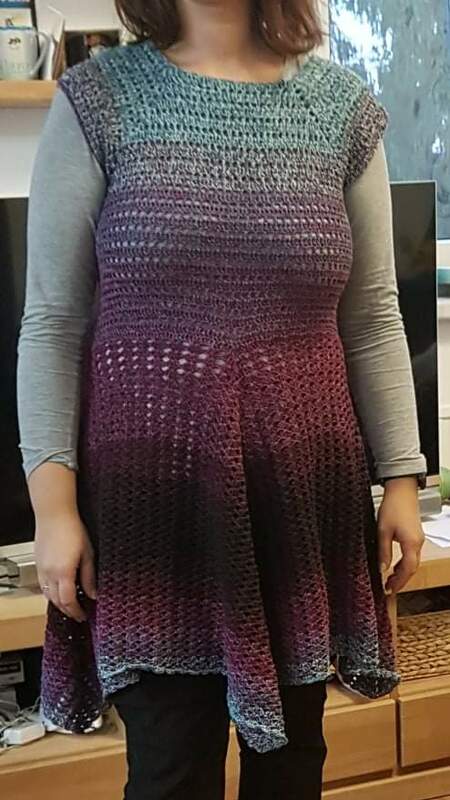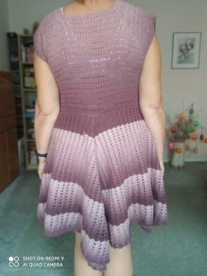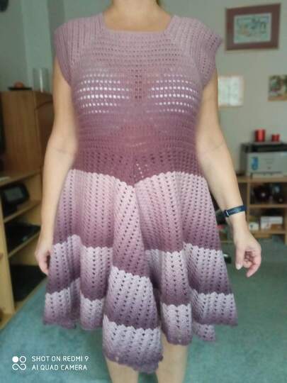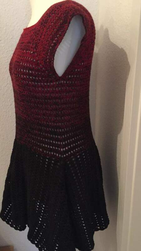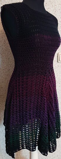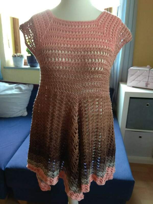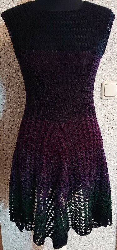 Das Kleid Kasandra ist, aufgrund seiner Arbeitsweise, bestens für Farbverlaufsgarn geeignet.