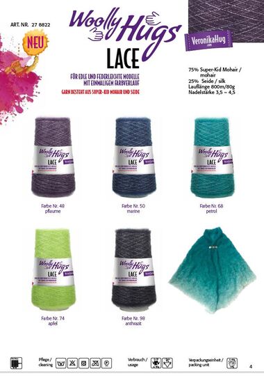 Woolly Hugs LACE (75% Super-Kid Mohair, 25% Seide, Lauflänge ca. 800m/80g) Langendorf & Keller