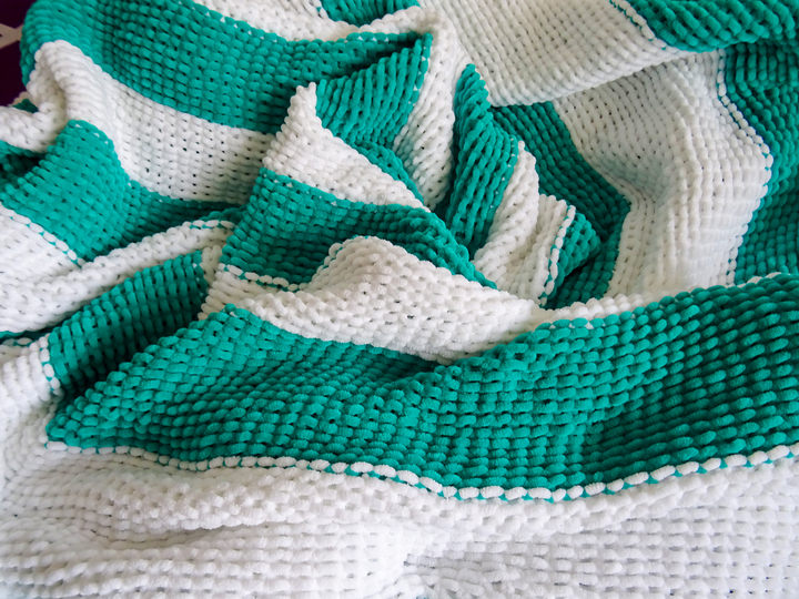 Diese selbstgestrickte Wolldecke ist ein Traum - herrlich warm und so kuschelig weich. Ideal für die graue und kalte Zeit im Moment.