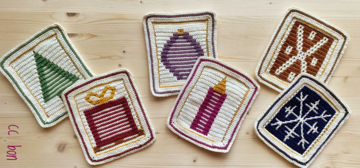 cc-Christmas ist kein klassisches Mosaik-Muster, wird aber in Mosaiktechnik gehäkelt.