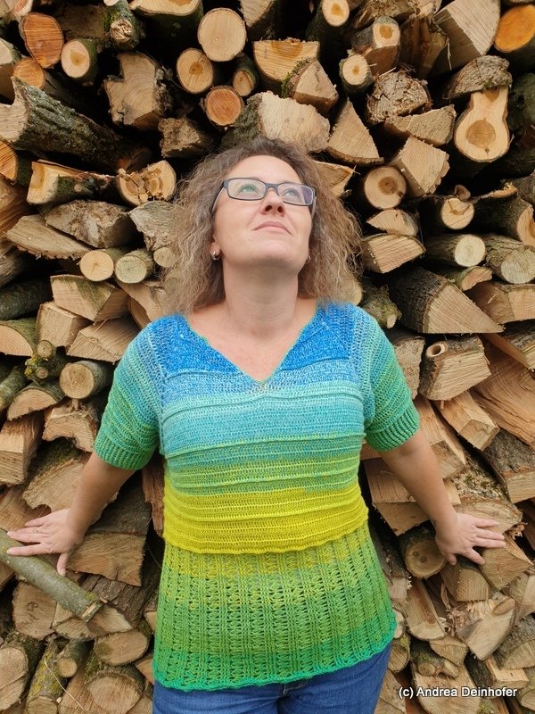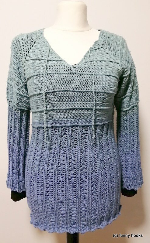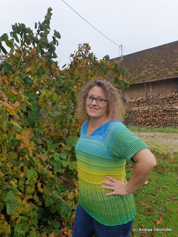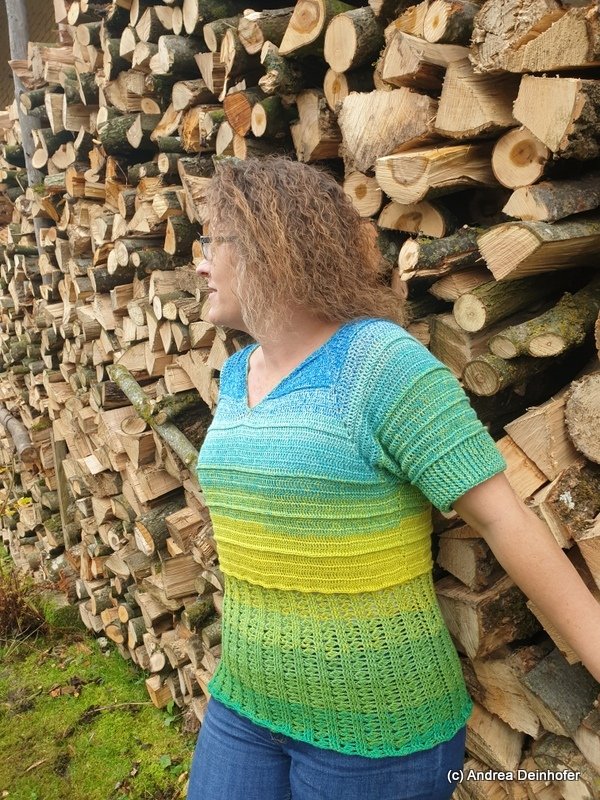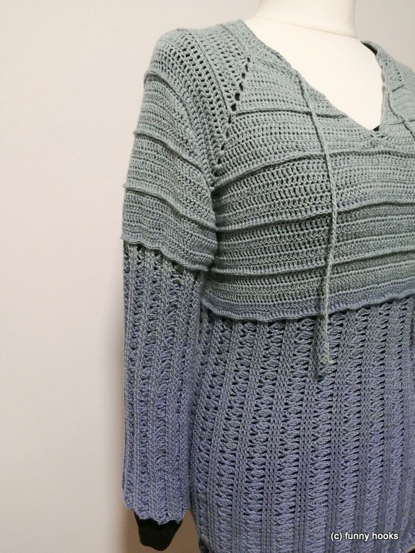Dieser Pullover entstand in Zusammenarbeit mit der lieben Martina Mitis, die bei der Tunika Ananda so einen tollen Ausschnitt gearbeitet hat, dass wir diesen Ausschnitt und das Muster 3 aus dem CAL Tuch Abrienda unbedingt kombinieren wollten. Hier findet ihr nun das Ergebnis :)