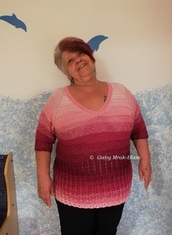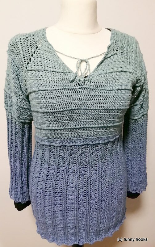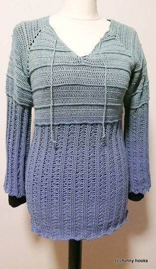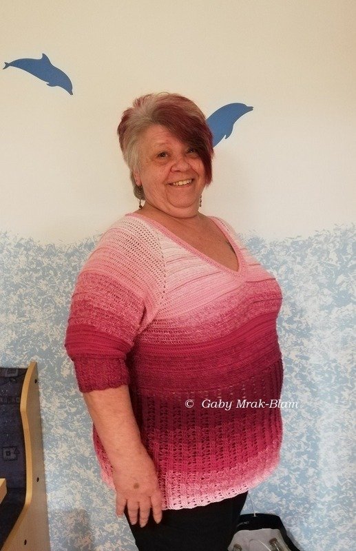 Der Pullover kann auf jede Körpergröße angepasst werden, Mengenangaben siehe bei "benötigte Materialen"