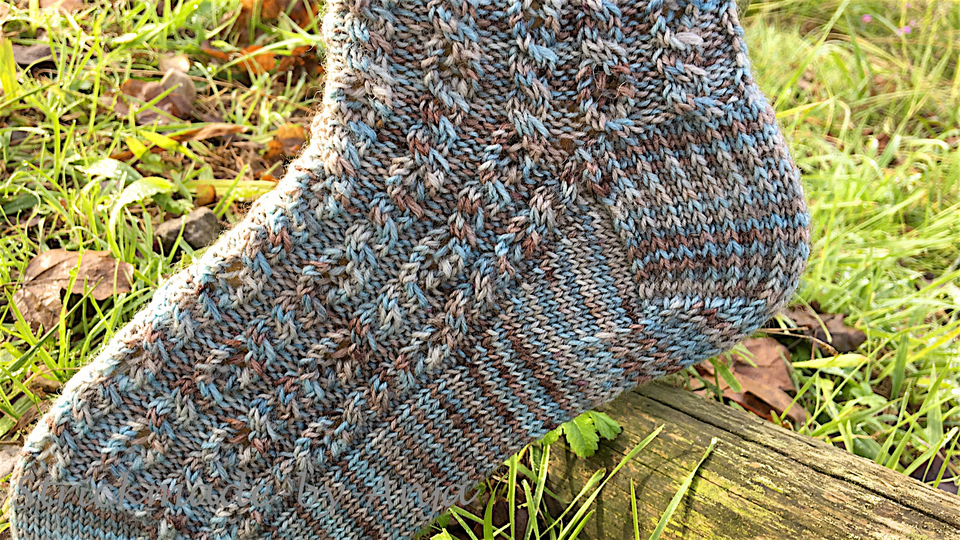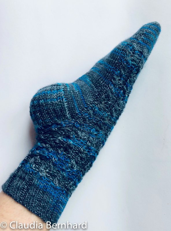 Die PDF Datei enthält die Anleitung für die oben beschriebenen Socken gestrickt aus 4fach Sockenwolle.