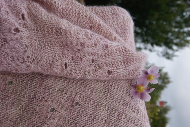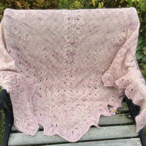 Das Tuch wird als gleichschenkliges Dreieckstuch mit langen Zipfeln gestrickt. Abwechslungsreiche Blatt - und Strukturmuster garantieren einen sich in der Schwierigkeit steigernden Strickprozess.