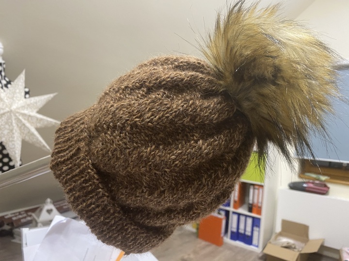 Die Mütze kann mit allen weichen Merino- und Alpaka-Garnen nachgestrickt werden, die mit Nadeln 4 mm verstrickt werden. Das hier verwendete Garn (BABY ALPAKA DK von ist sehr leicht und kuschelig und es wird in vielen Farben angeboten.