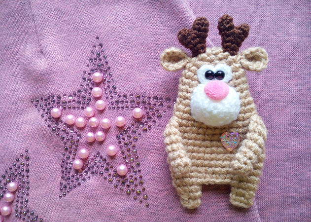 274DE Häkelanleitung Rentier Brosche - Amigurumi PDF Knittoy CP