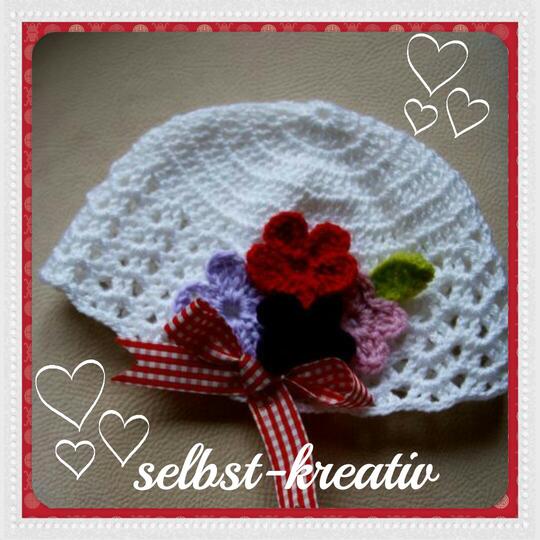 Hier bekommst du in elektronischer Form eine Häkelanleitung für eine Babymütze. Gerade recht für Frühling und Sommer. Passend für einen Kopfumfang von 36 bis 40 cm.( 0-3 Monate)