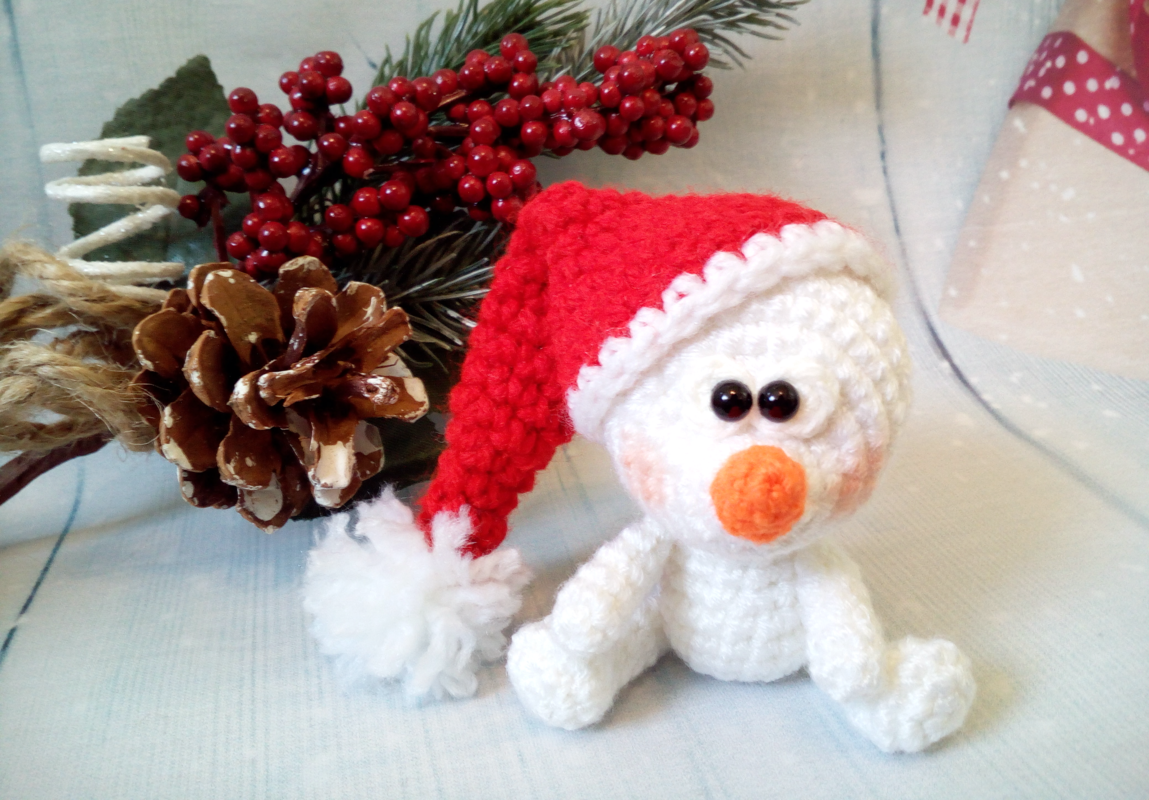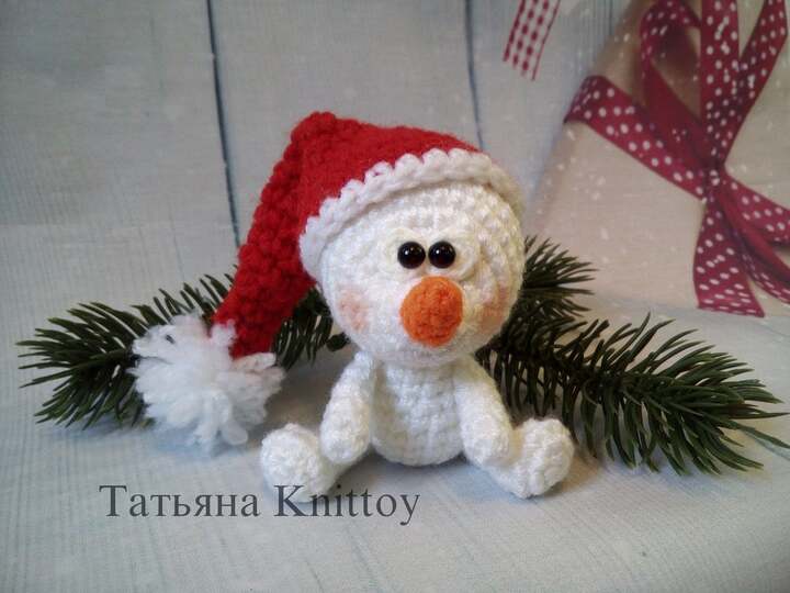 Größe: Mit dem von mir empfohlenen Garn ist der Schneemann ca. 6-7 cm groß