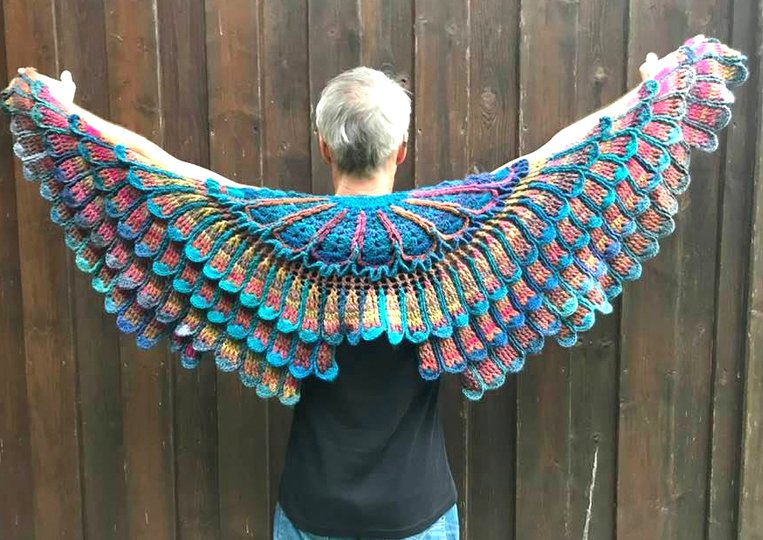 Das schuppenartige Hauptmuster kommt dem Aussehen eines echten Flügel sehr nahe! mit der Breite von über 2 Meter, kannst Du Dich schützend wie in Engelsflügel einhüllen....Doch bitte NICHT zu hoch fliegen....