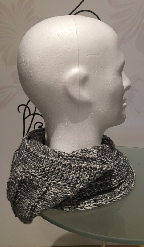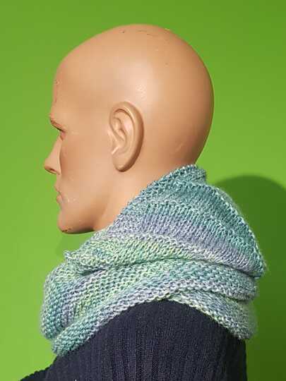 Der Loop legt sich wärmend um den Nacken und ist groß genug um ihn einmal um den Kopf zu wickeln.