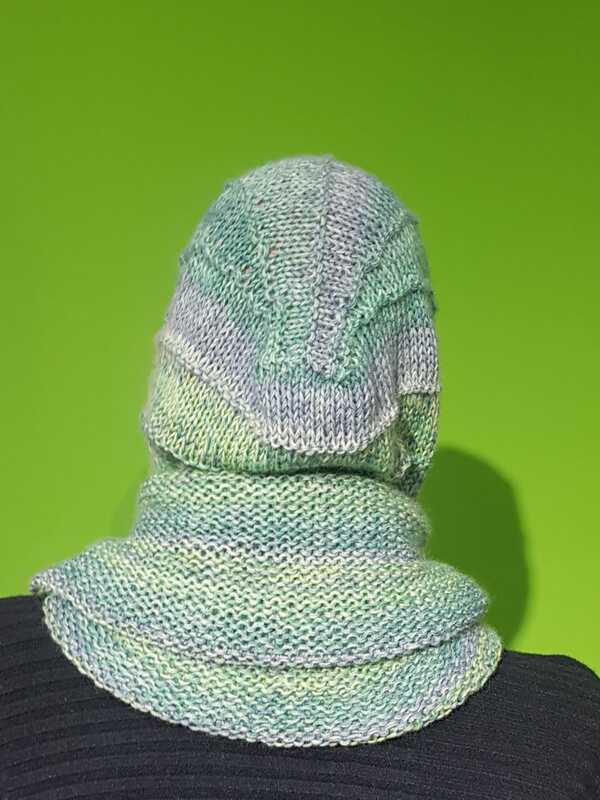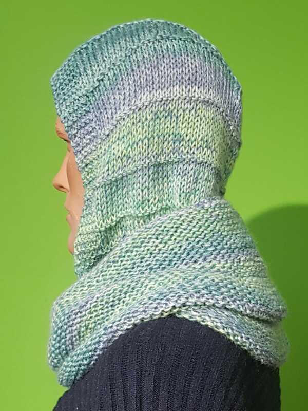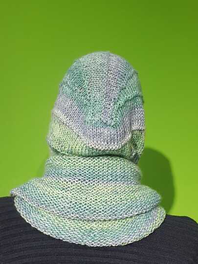 Der „COUPEL“ wird von oben nach unten in einem Stück gestrickt, beginnend mit der Kapuze.