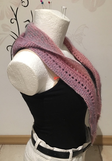 Der Loop ist ca. 120cm lang. Diese Länge reicht, um es einmal um den Kopf zu wickeln.