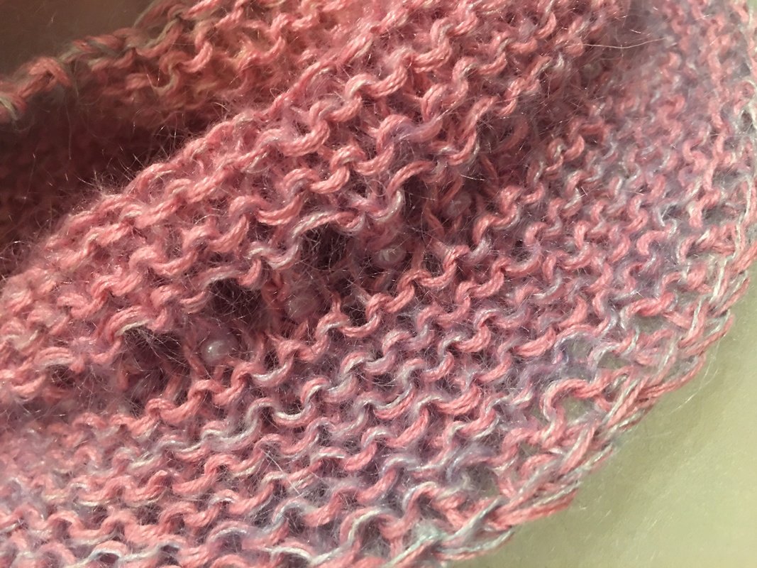 Die verkürzte Reihen werden mit Doppelmaschen abgestrickt.