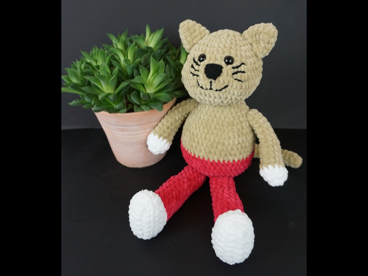 Die Katze wird mit der angegebenen Wolle und Nadelstärke ca. 33 cm hoch.