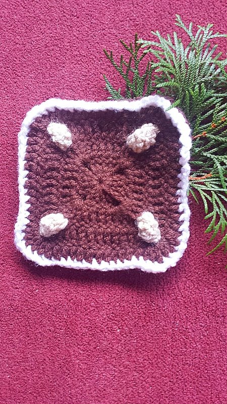 Einfaches Dekoelement, aus Wollresten gehäkelt.