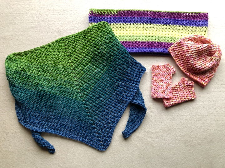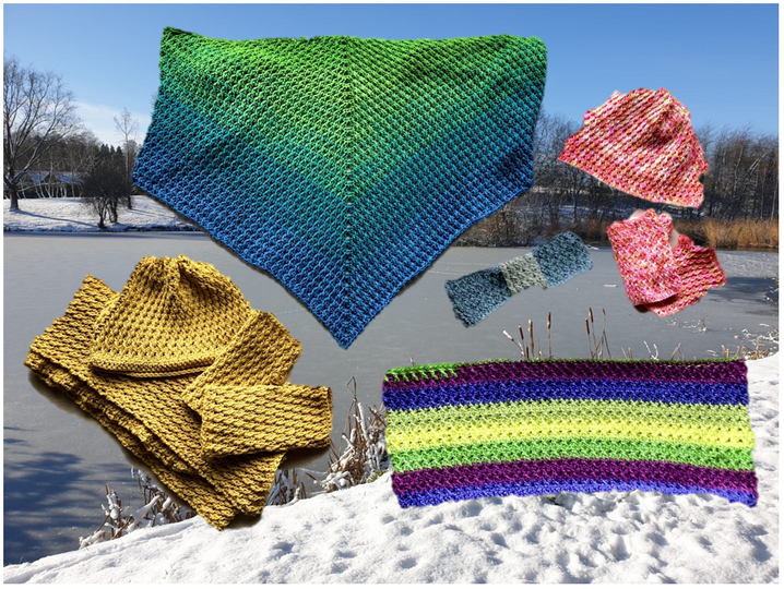Dieses Set bringt dich warm durch den Winter und hilft dir dein eigenes Winteroutfit zusammenzustellen – egal ob Schal/ Loop oder Tuch, Mütze/ Longbeanie oder Stirnband oder Armstulpen! Hier ist für jeden Geschmack etwas dabei.