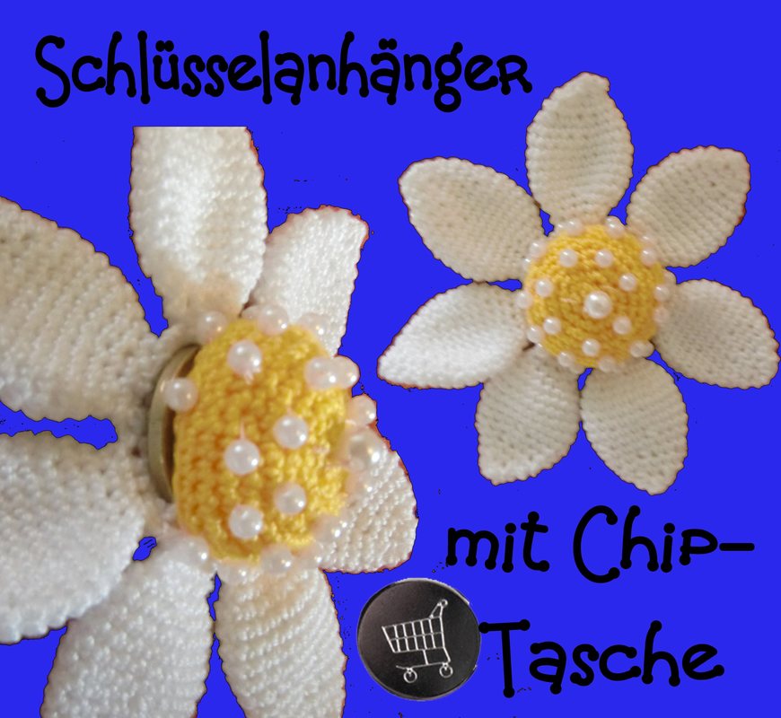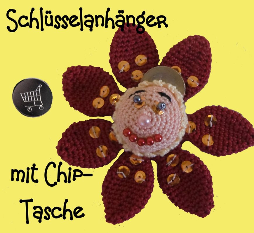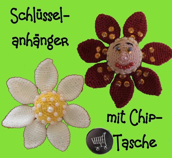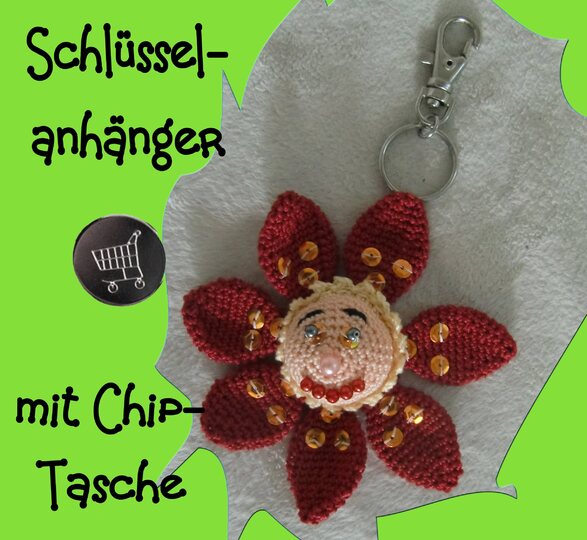 Sie kaufen hier die Häkelanleitung für den Schlüsselanhänger Blume,