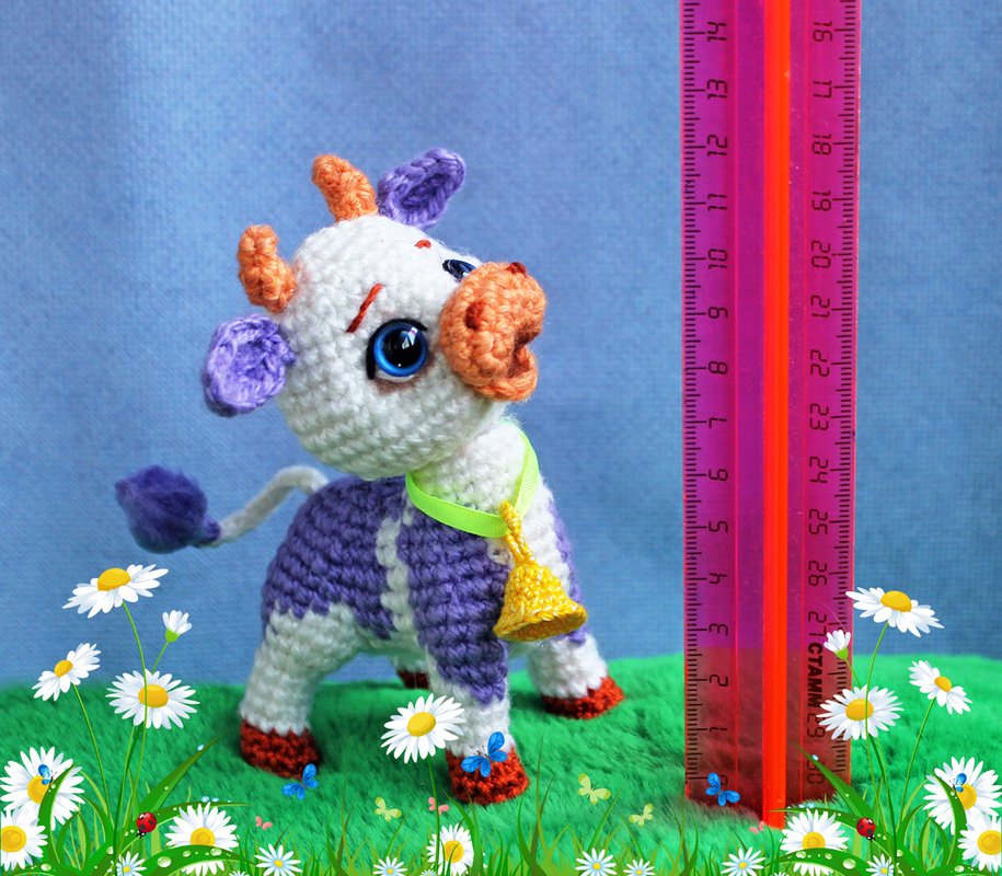 Die Figur ist mit Farbwechsel gehäkelt, die Flecken sind in Jaquard-Technik gehäkelt. Es ist aber auch möglich die Flecken mit Acrylmarker oder Ölfarbe zu malen.