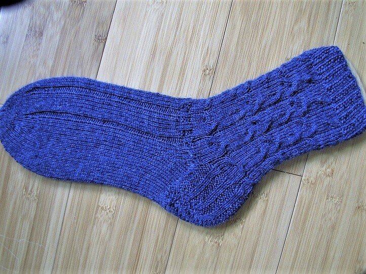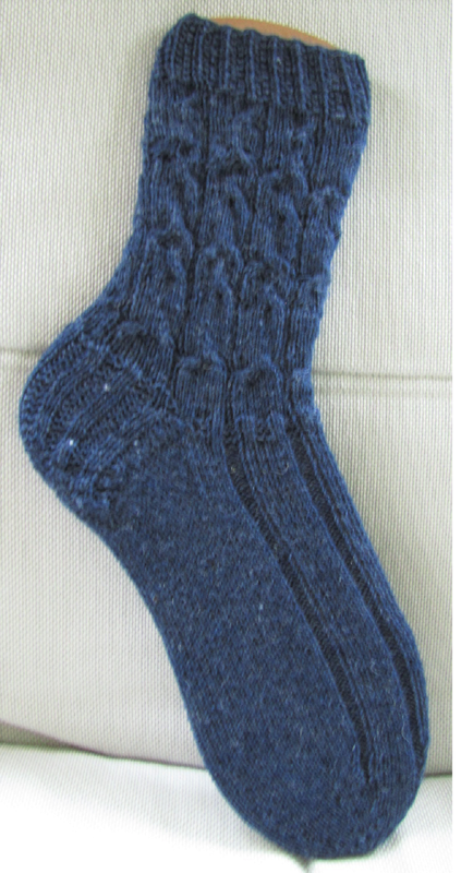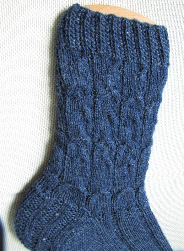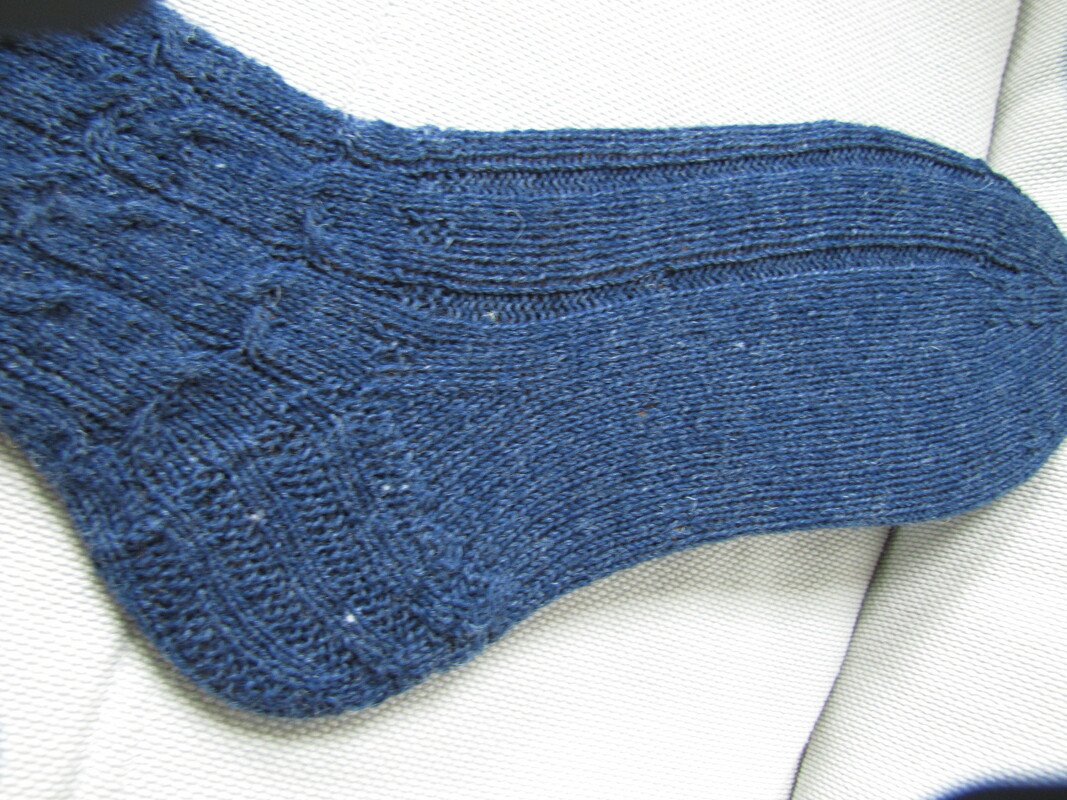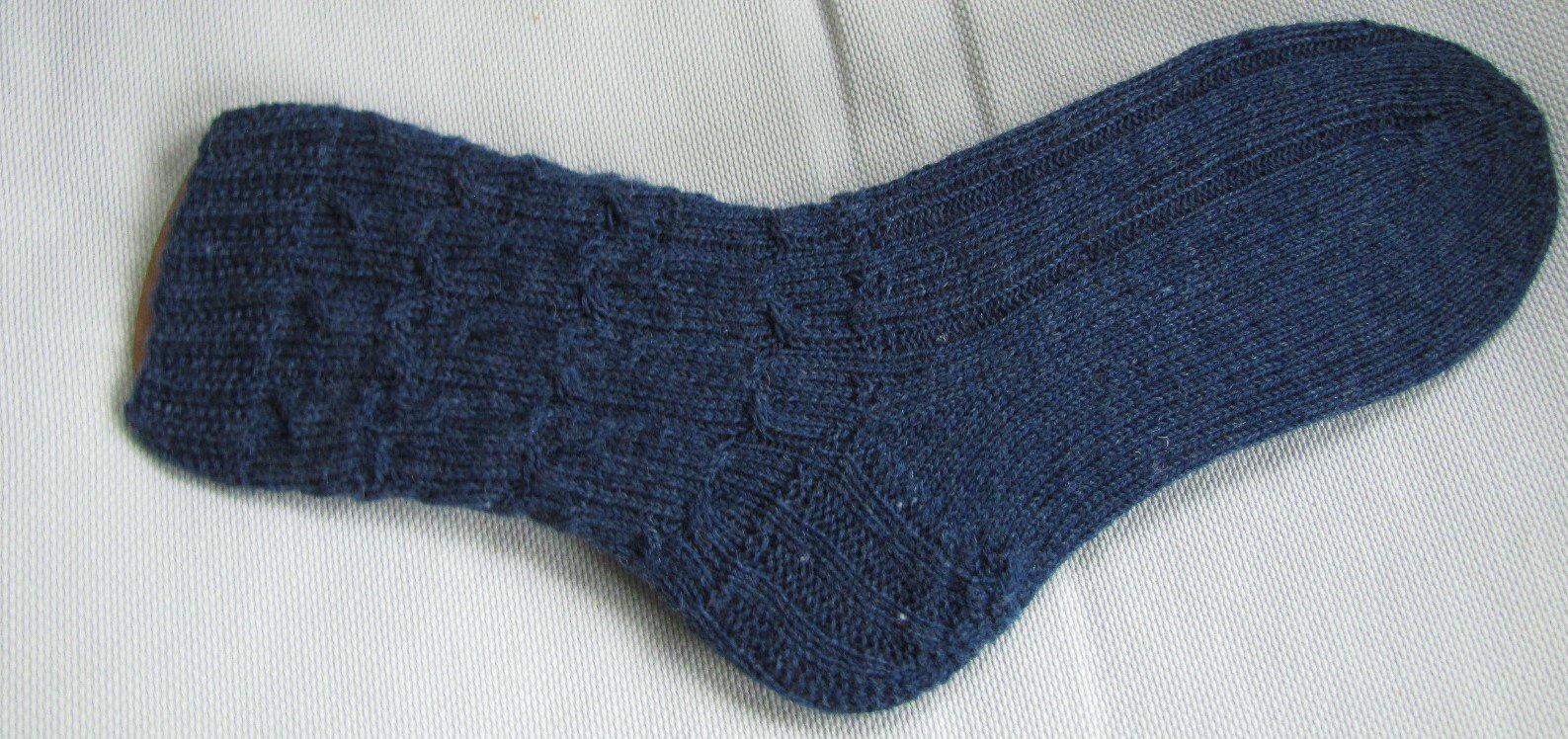 Hier eine Anleitung für Herrensocken mit einem leichten Zopfmuster.