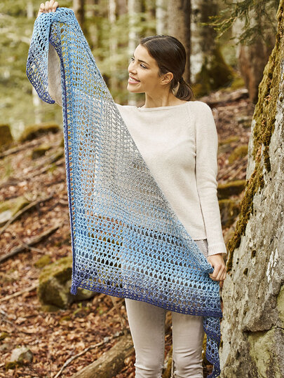 Ein ganz neues Garn, die Woolly Hugs Merino Mix, wurde zu diesem kuscheligen Tuch.