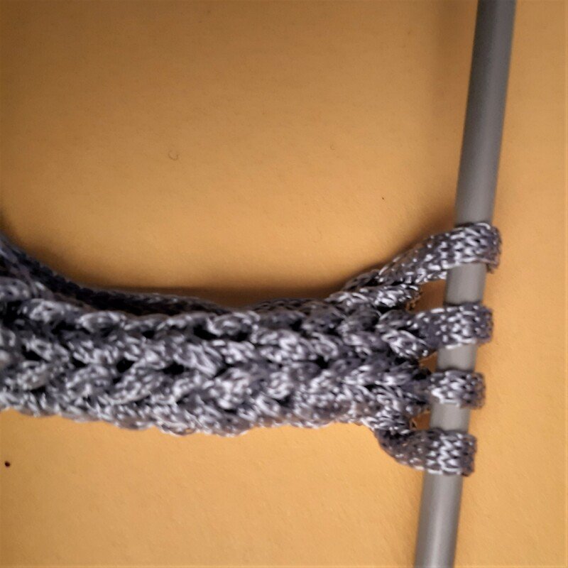 Leicht. nur rechte Maschen stricken und Luftmaschen häkeln.