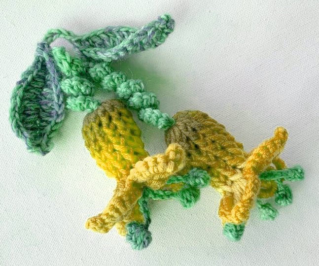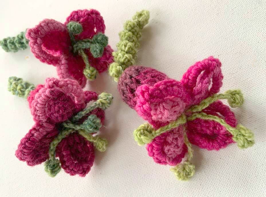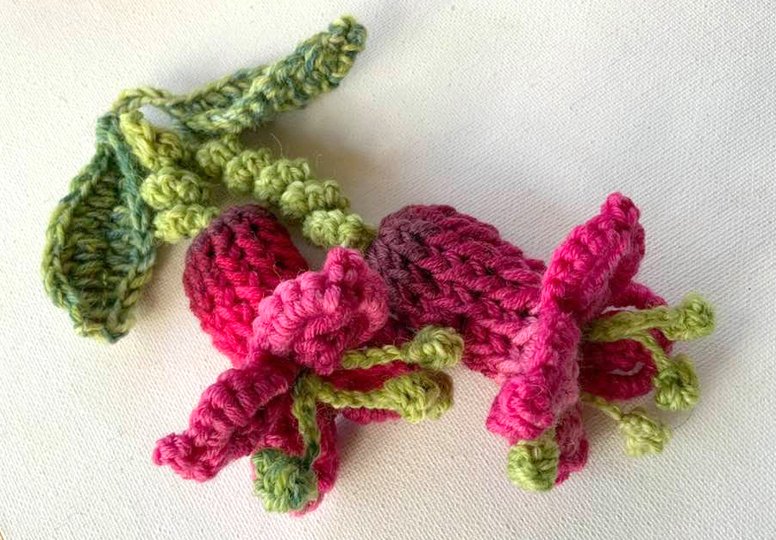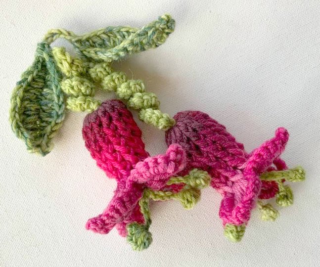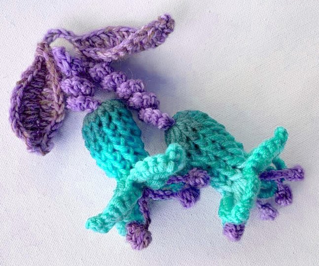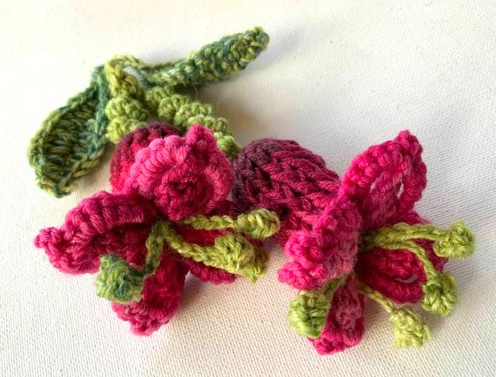 Petra Perles ZauberBlume ist mit der angegebenen Wollestärke ca. 4 cm breit und 8 cm hoch