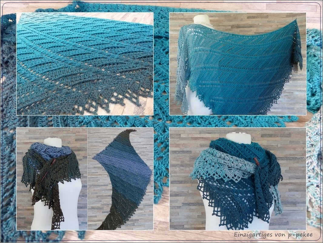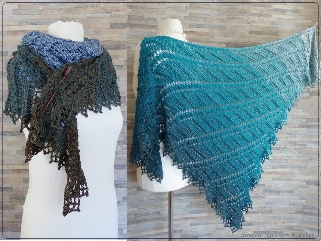 Beide Tücher ziehen die Blicke auf sich. Sie sind einzigartig. Beim Tragen kommen die Zacken und das Reliefmuster sehr zur Geltung. Komplimente sind garantiert.