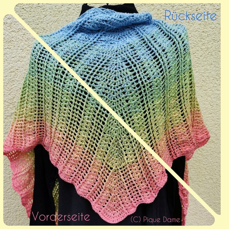 Das Jubiläums-Tuch 2020 besteht aus einem einfachen schlichten Muster und ist absolut fernsehtauglich. Es kann von beiden Seiten getragen werden und verträgt jede Farbe. UND es kann von beiden Seiten getragen werden ;)