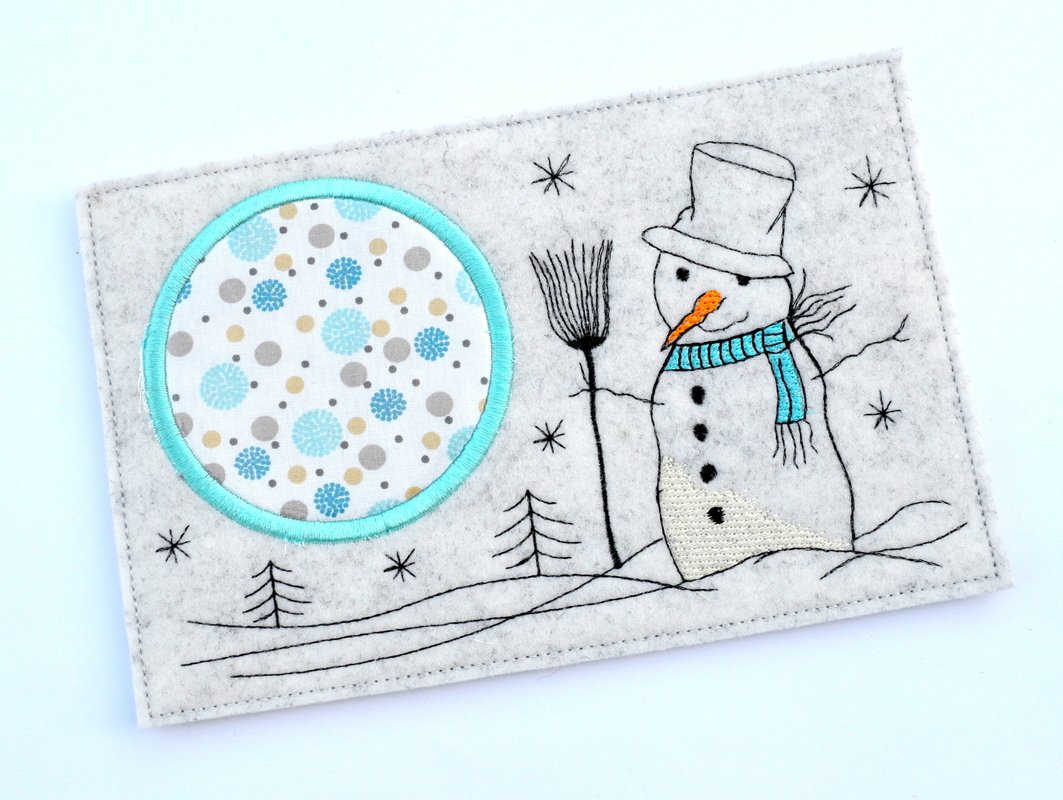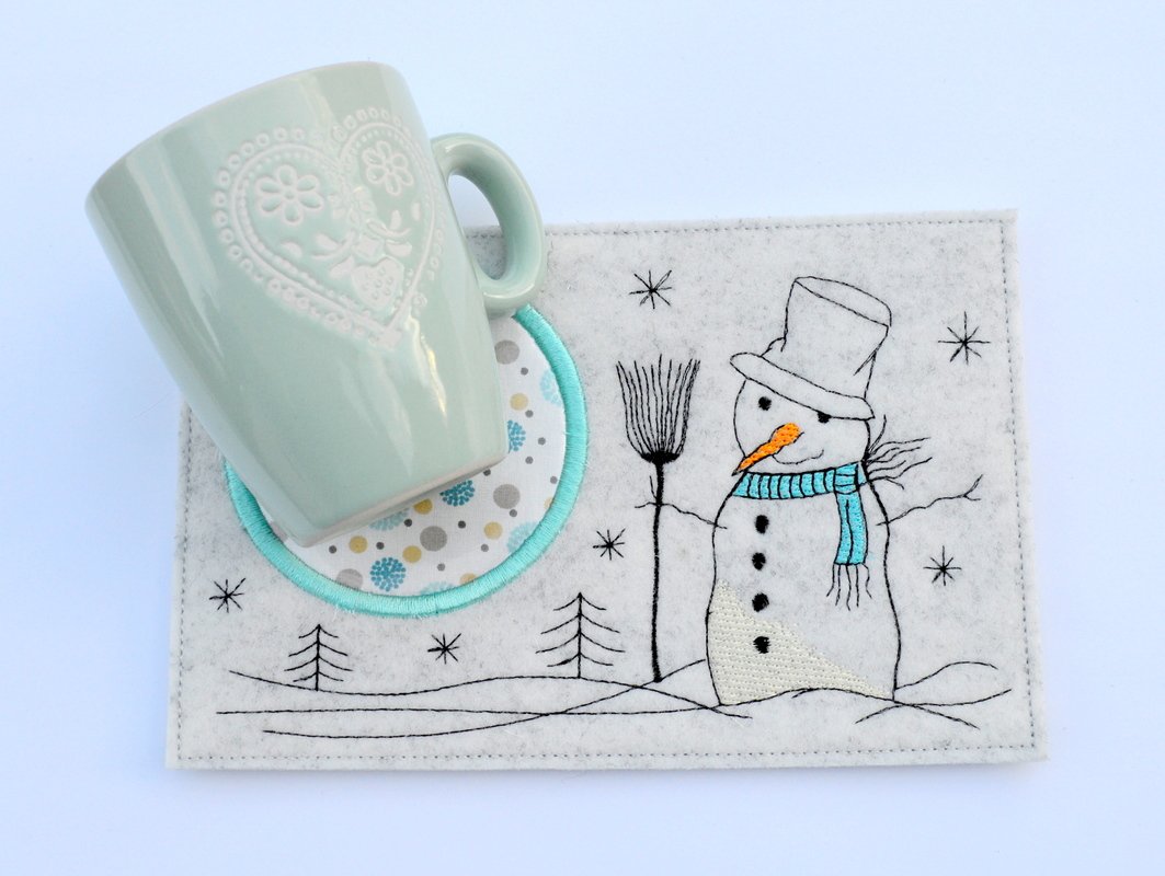 Stickdatei Mug Rug mit Schneemann,